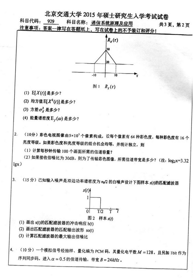 2015年北京交通大学通信系统原理及应用929考研真题(2)
