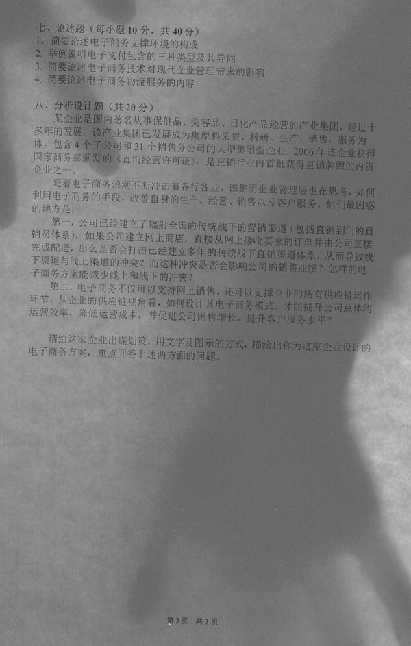 2015年对外经济贸易大学金融学与电子商务考研真题(3)
