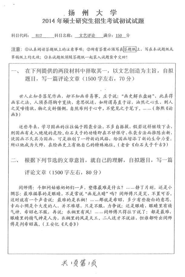 • 扬州大学文院语言学及应用语言学初试第一经验