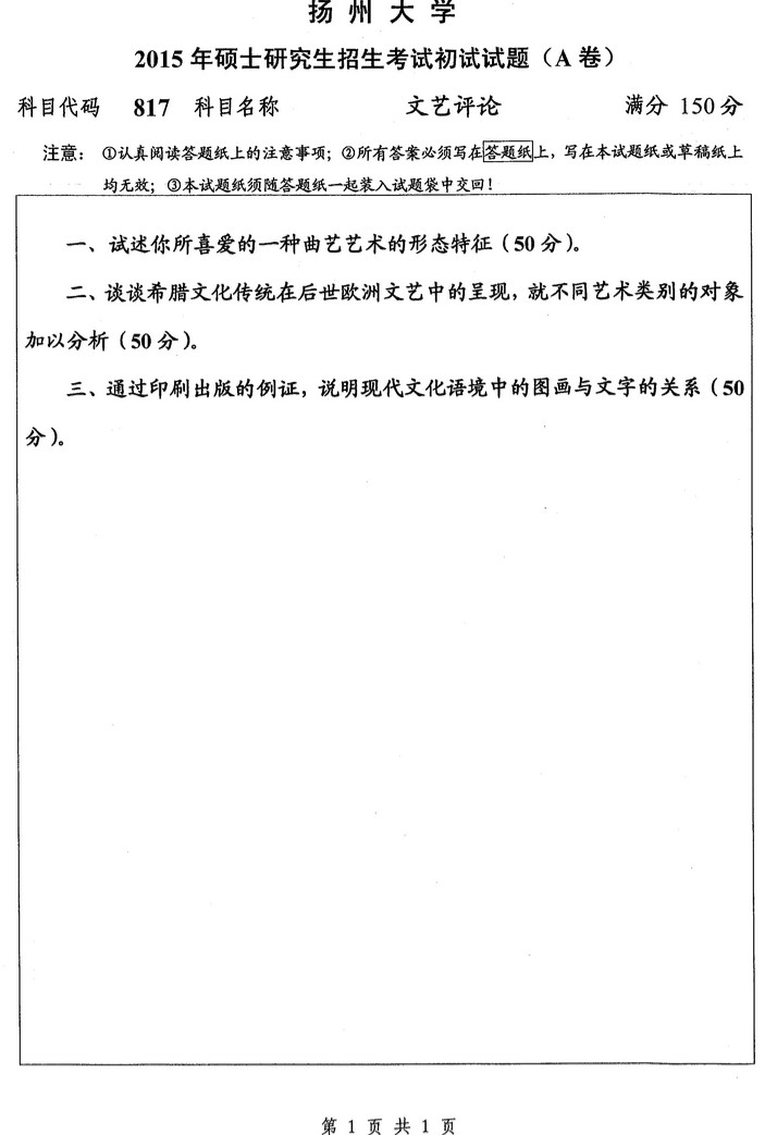 2014--2017扬州大学817文艺评论历年考研真题(2)