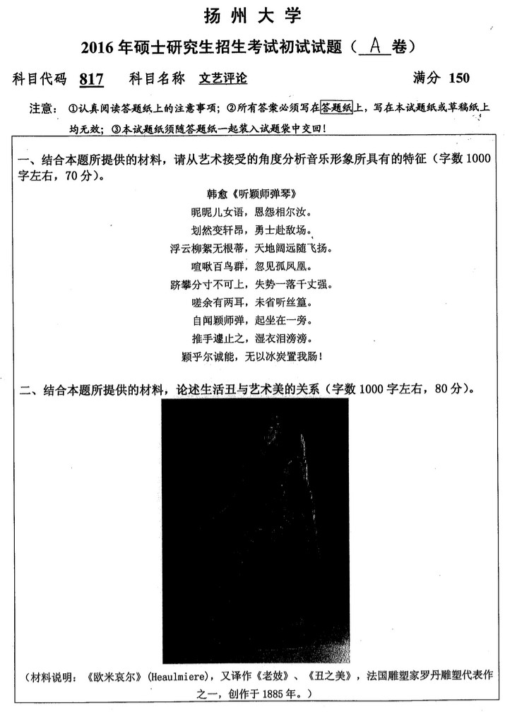 2014--2017扬州大学817文艺评论历年考研真题(3)