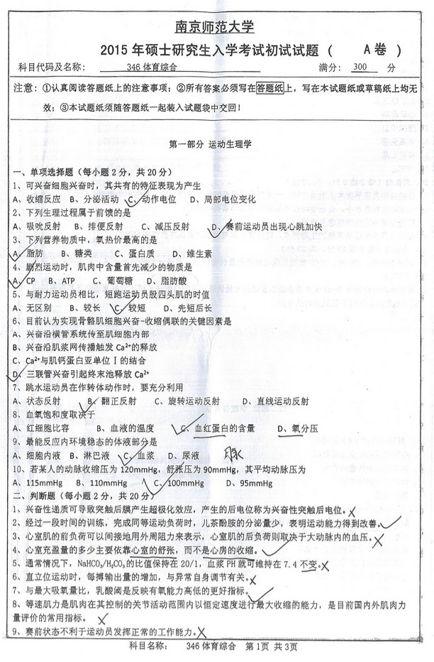 2014-2016南京师范大学346体育综合考研真题(4)