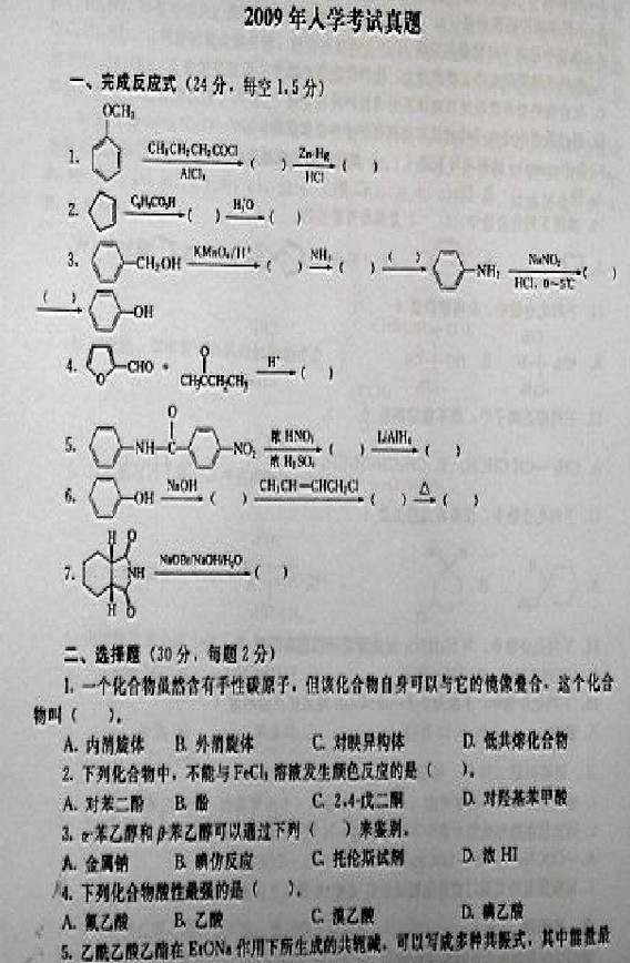 • 化工考研复试问题(工业催化、有机化学、高分子、化学工程)
