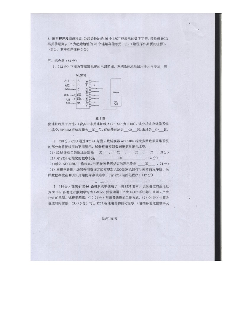 上海理工大学单片机原理及运用2007,2010-2014考研真题汇编(13)