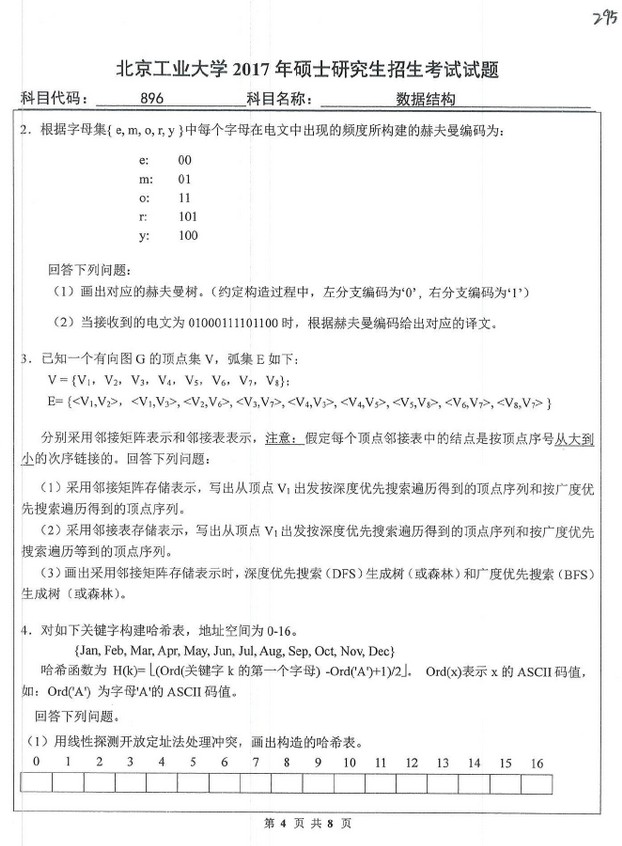 北京工业大学2017年硕士考试试题896数据结构真题(4)