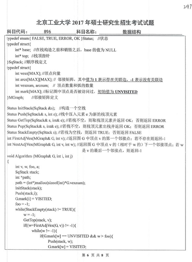 北京工业大学2017年硕士考试试题896数据结构真题(6)