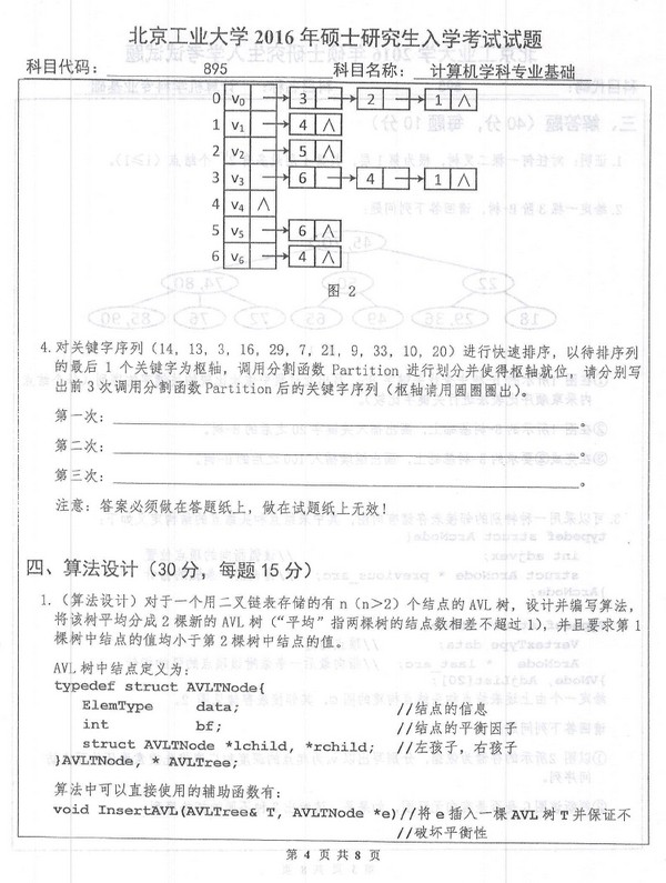 2016年北京工业大学895计算机学科专业基础考研真题(4)