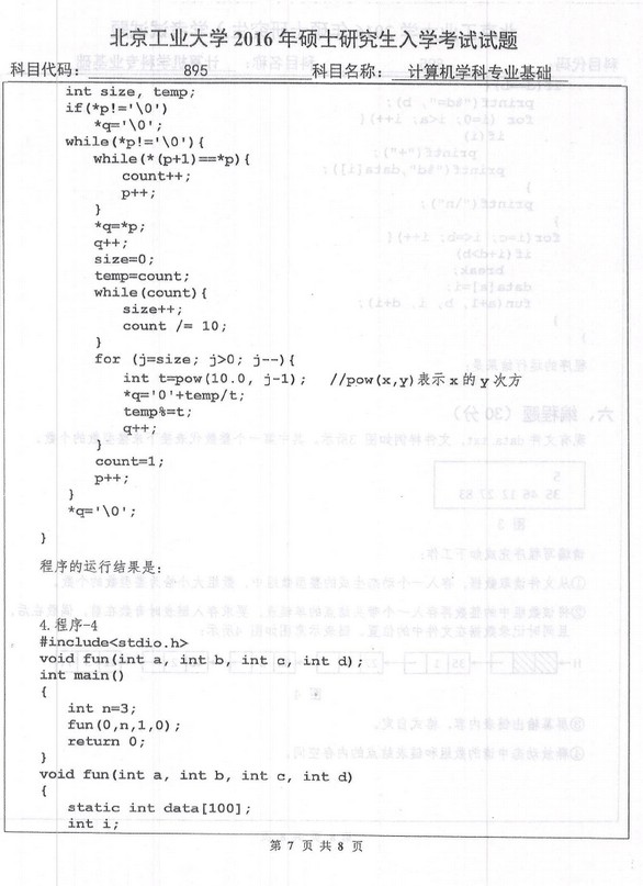 2016年北京工业大学895计算机学科专业基础考研真题(7)
