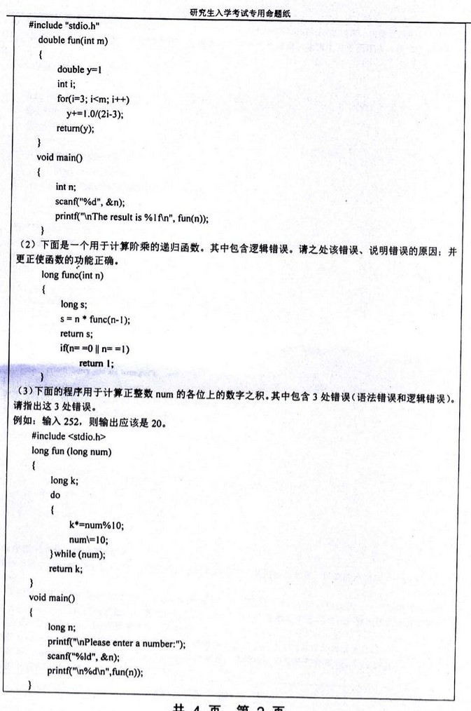 2011年湖南大学C语言程序设计考研真题考研试题(2)