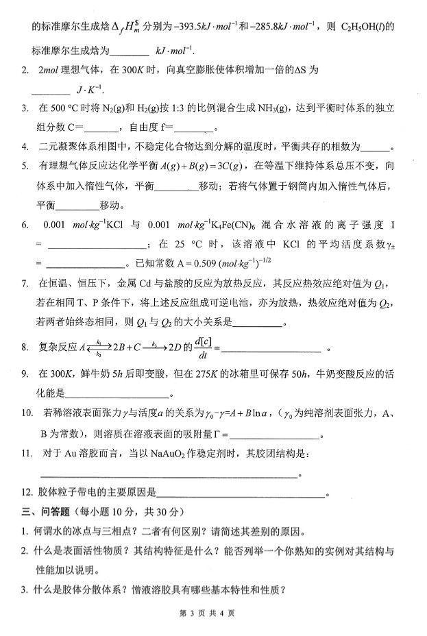 2009年云南师范大学822物理化学考研真题考研试题(3)