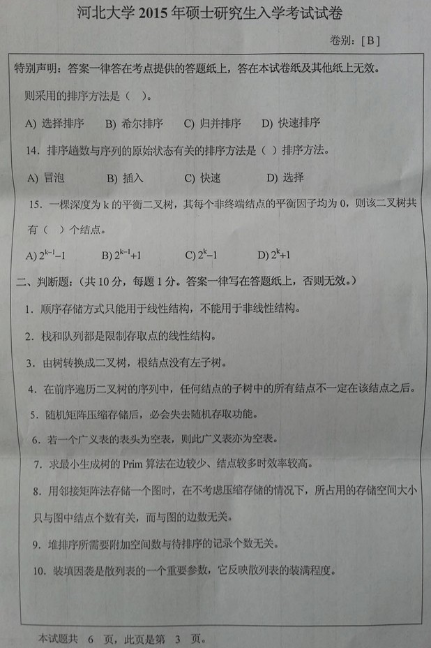 2015年河北大学数据结构907考研真题(3)