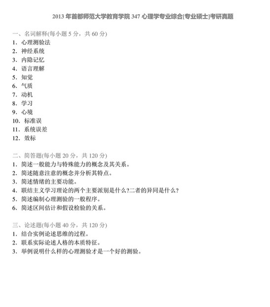 首都师范大学心理学专业综合2011-2015考研真题带部分答案(3)