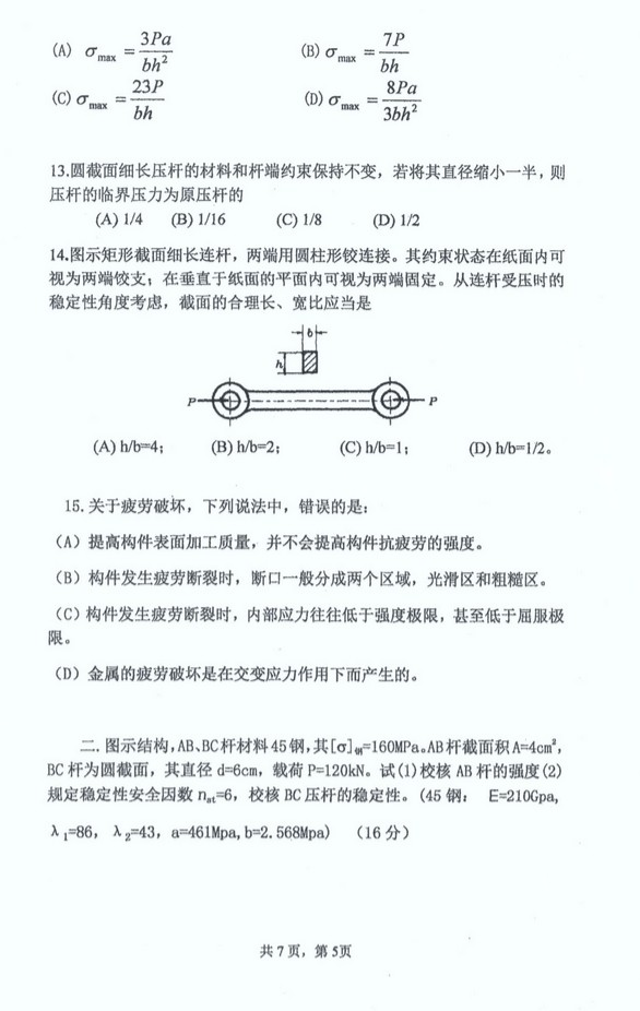 上海理工大学2015材料力学考研真题(5)