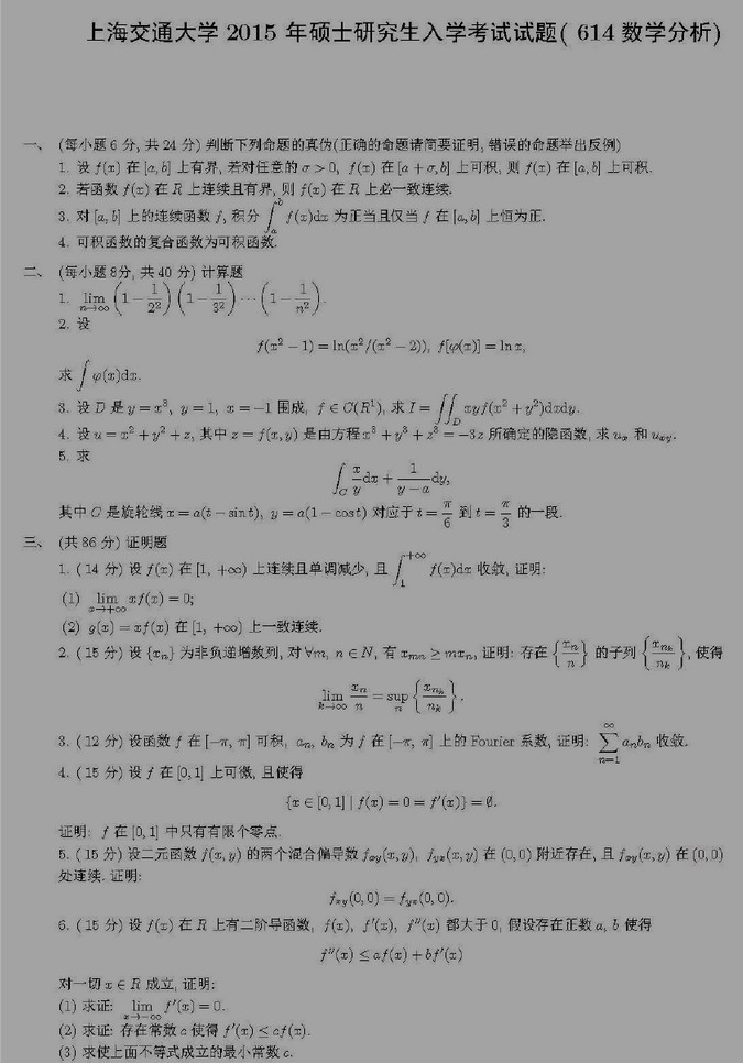 2010-2015上海交通大学数学专业考研数学分析考研真题(6)