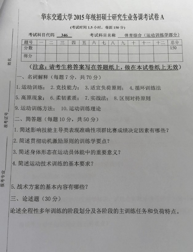 2015-2017华东交通大学346体育综合考研专业课真题(3)