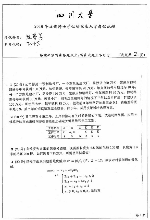 2009年青岛大学860运筹学(2)考研真题2011年青岛大学860运筹学(2)考研真题2012年青岛大学860运筹学(2)考研真题2013年青岛大学872运筹学考研真题2014年青岛大学872运筹学考研真题2015年青岛大学872运筹学考研真题2016年青岛大学872运筹学(2)考研真题2017年 ...