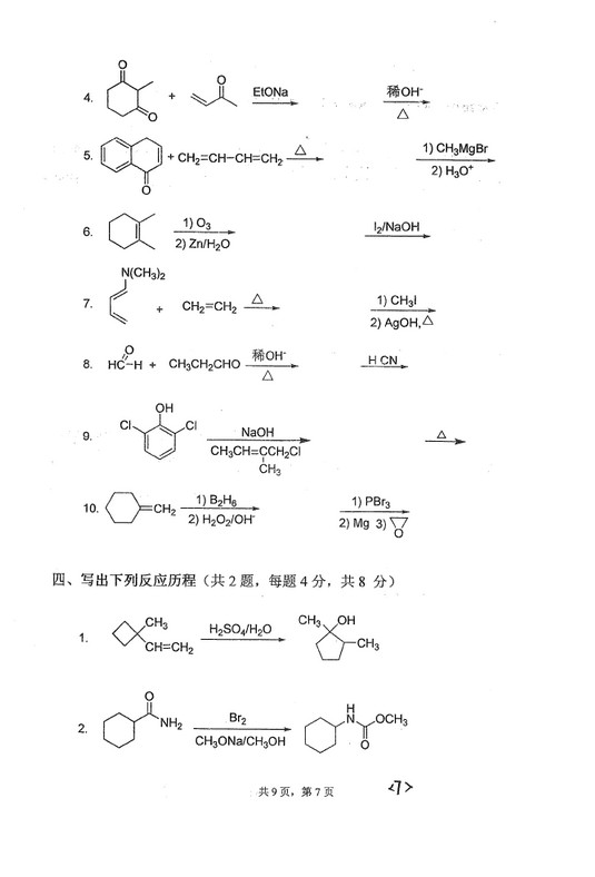 2018年云南大学化学一考研真题复习试题(7)