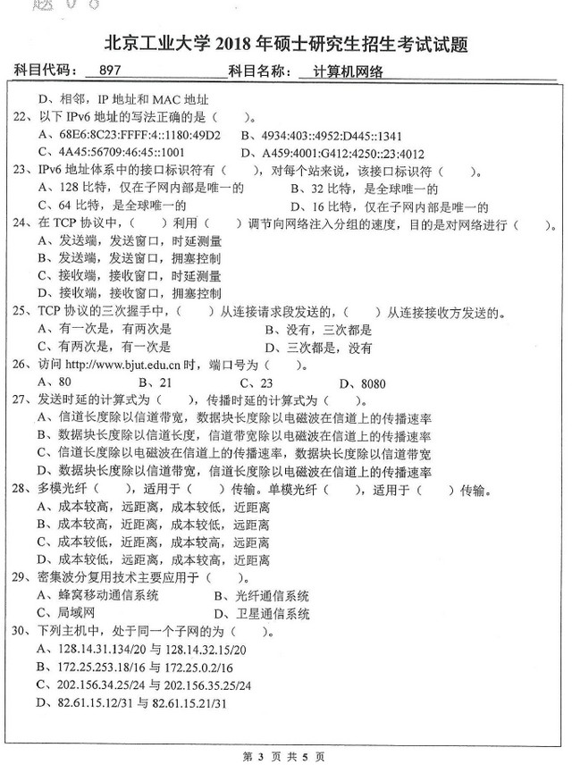 北京工业大学2018年硕士897计算机网络考试试题(3)