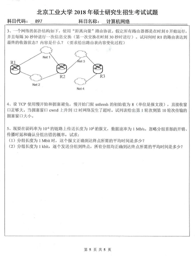 北京工业大学2018年硕士897计算机网络考试试题(5)