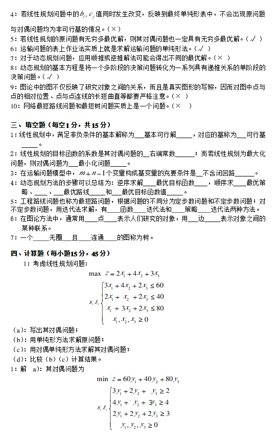 东北大学考研2015年学年第二学期运筹学期末试卷(2)