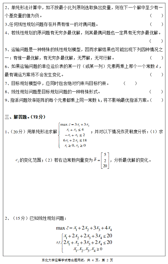 2009年青岛大学860运筹学(2)考研真题2011年青岛大学860运筹学(2)考研真题2012年青岛大学860运筹学(2)考研真题2013年青岛大学872运筹学考研真题2014年青岛大学872运筹学考研真题2015年青岛大学872运筹学考研真题2016年青岛大学872运筹学(2)考研真题2017年 ...