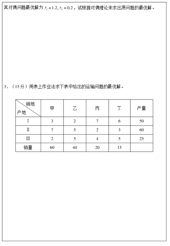 • 东北大学考研2015年学年第二学期运筹学期末试卷