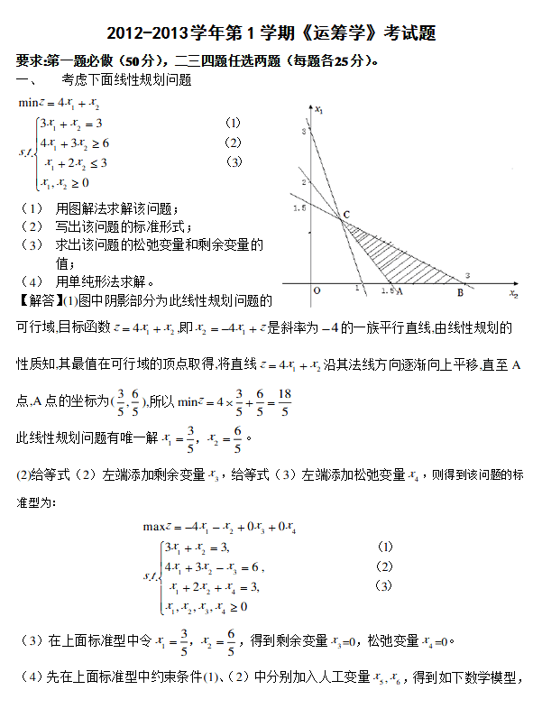 东北大学考研2012-2013学年第1学期运筹学期末考试题