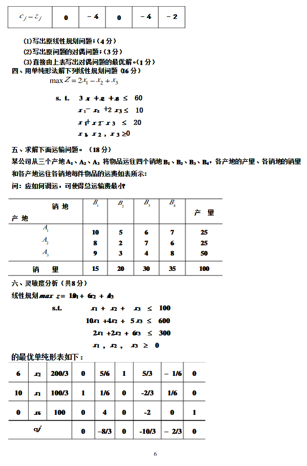 东北大学考研2012-2013学年第1学期运筹学期末考试题(6)
