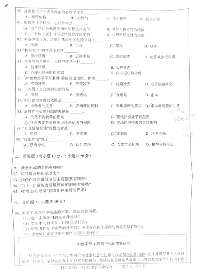 2014南京师范大学347心理学专业综合考研试题(5)