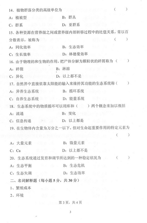 2015年西北师范大学817普通生态学考研初试真题(3)