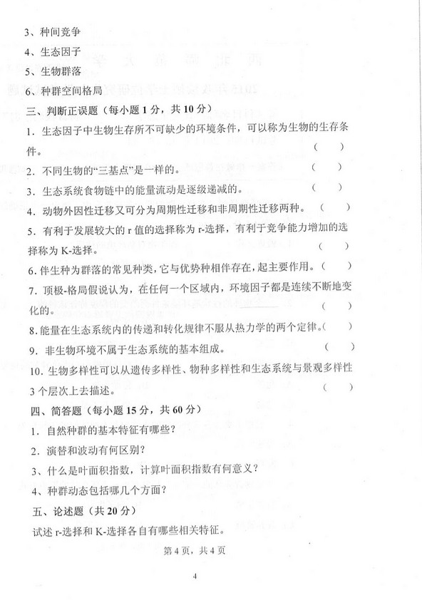 历年真题2013年《生态学基础》全国专插本考试试题2012年《生态学基础》全国专插本考试试题 ...