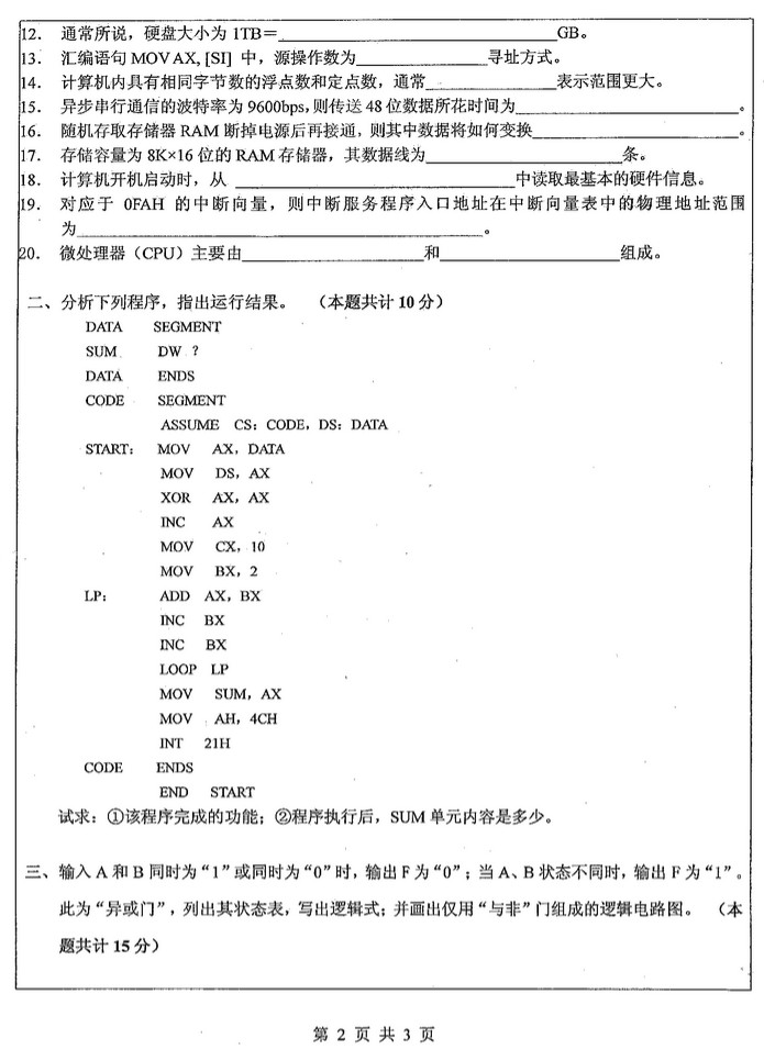 2013年湖南师范大学875数字电路与微机原理考研真题(2)