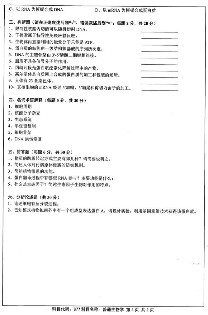 2010-2014江苏大学普通生物学复试历年考研真题(8)
