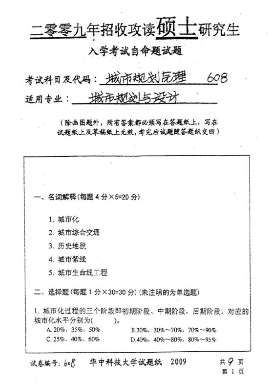 2002-2014华中科技大学考试城市规划原理608考研试题(6)