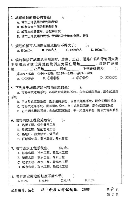 2002-2014华中科技大学考试城市规划原理608考研试题(7)