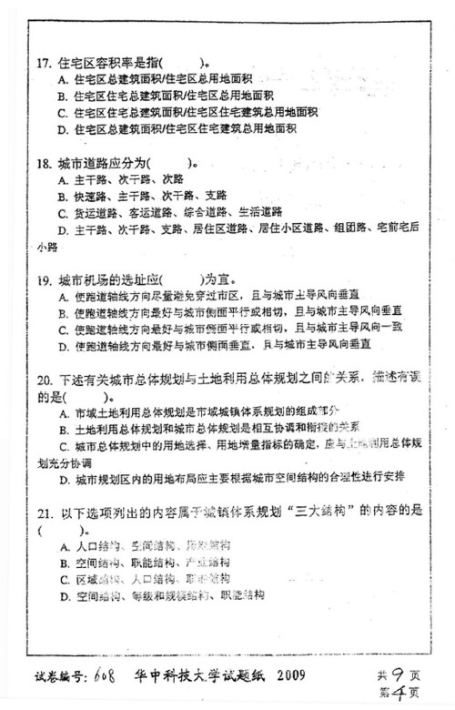 2002-2014华中科技大学考试城市规划原理608考研试题(9)