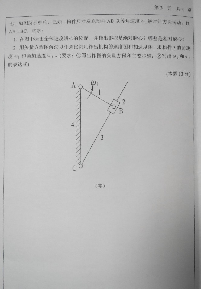2009-2013年西安理工大学机械原理509考研复试真题试题(3)