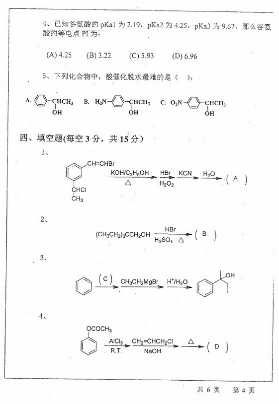 武汉大学2012年无机化学和有机化学B650考研试题(4)