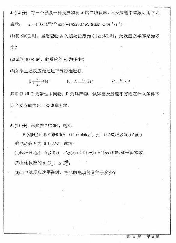 武汉大学2012年分析化学与物理化学D880考研试题(5)