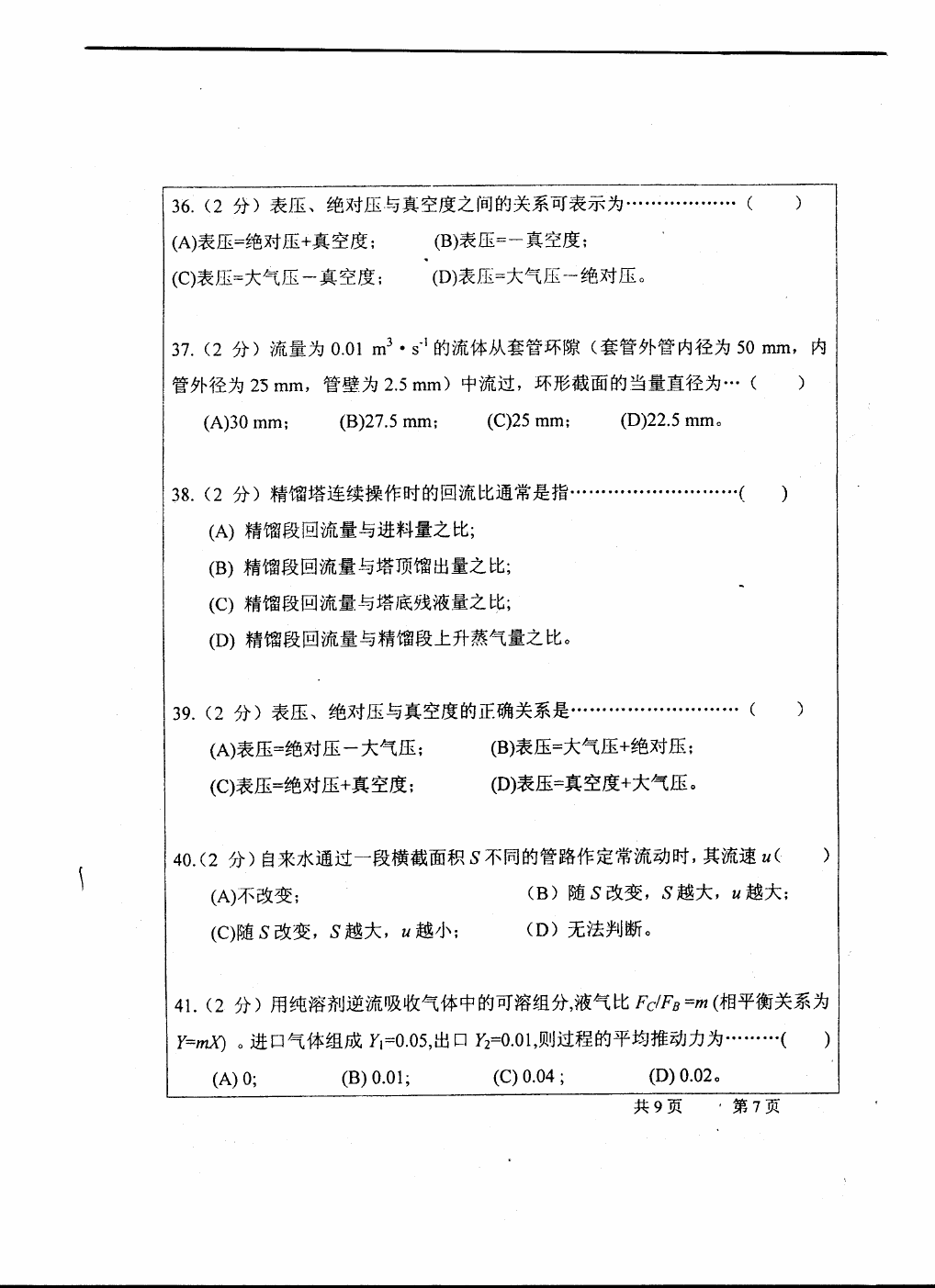 2007年,2010年,2012年武汉大学化工原理考研真题(20)