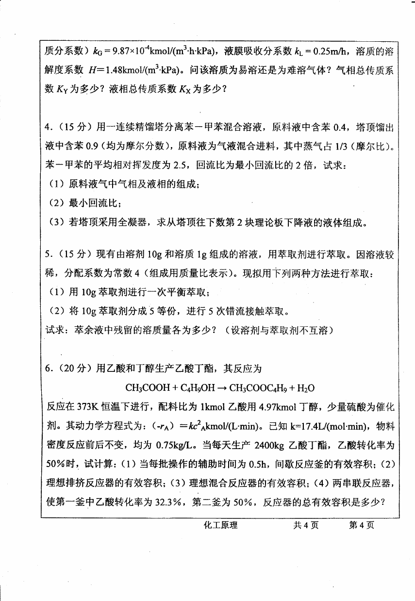 2007年,2010年,2012年武汉大学化工原理考研真题(4)