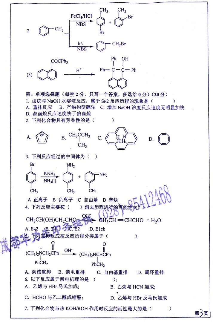 2007-2010年四川大学890有机化学硕士研究生考研考试真题(19)