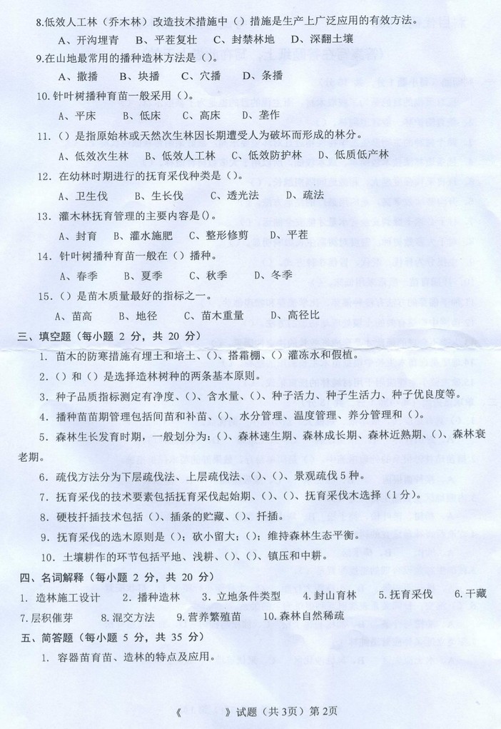 2018年内蒙古农业大学905森林培育学考研真题(2)
