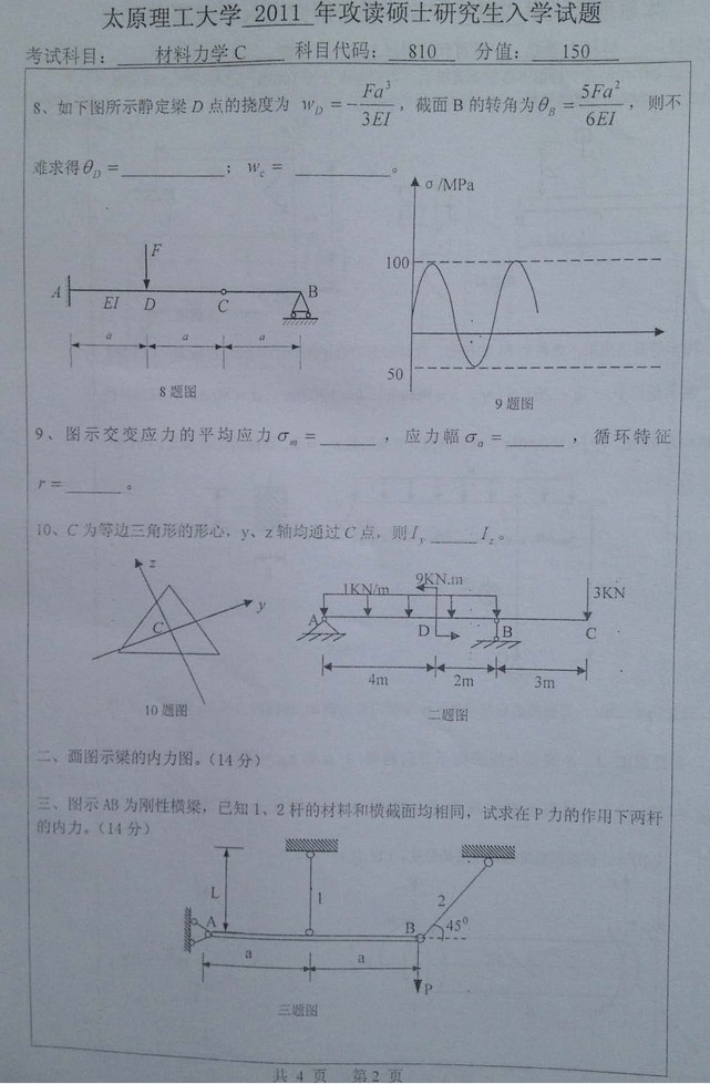 2011年太原理工大学810材料力学C考研真题(2)