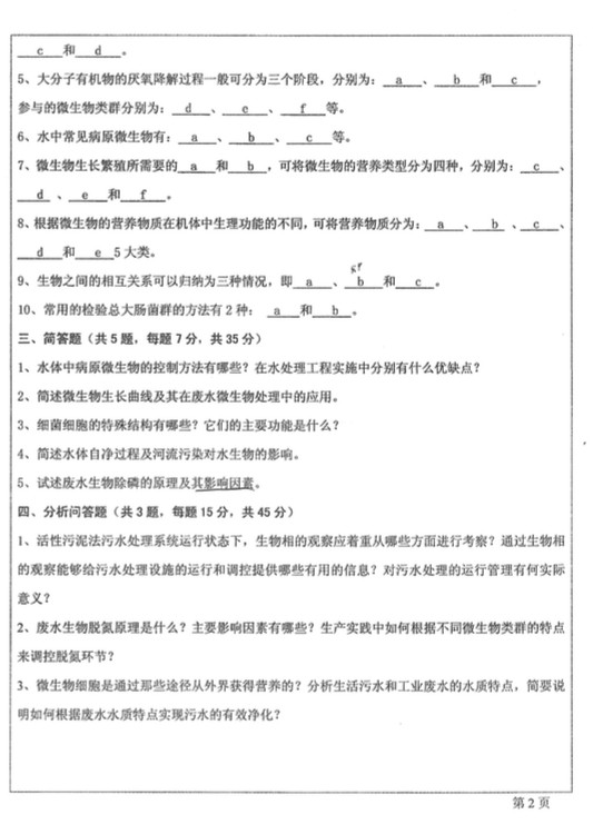 2015年西安建筑科技大学813环境工程微生物学考研真题(2)