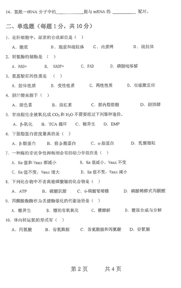 2011年南京工业大学812生物化学考研真题(2)