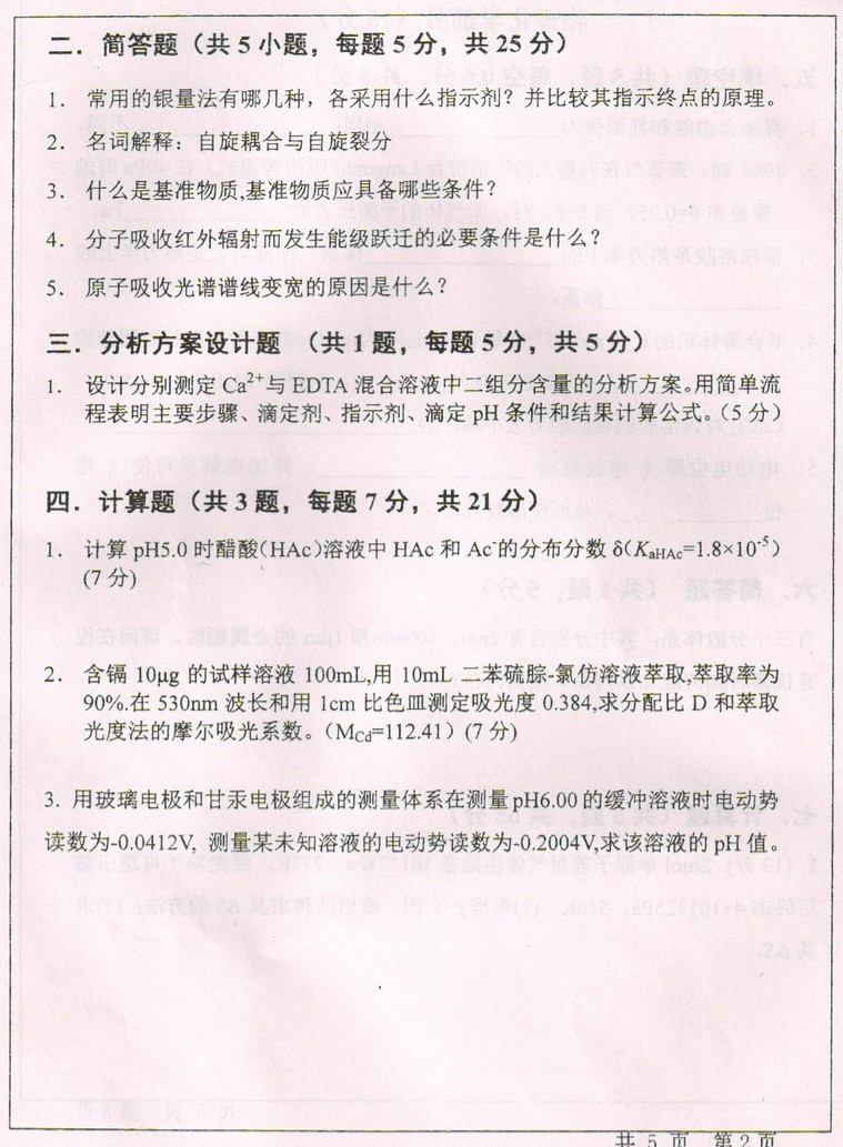 武汉大学2012年无机化学和物理化学D卷880考研真题(2)