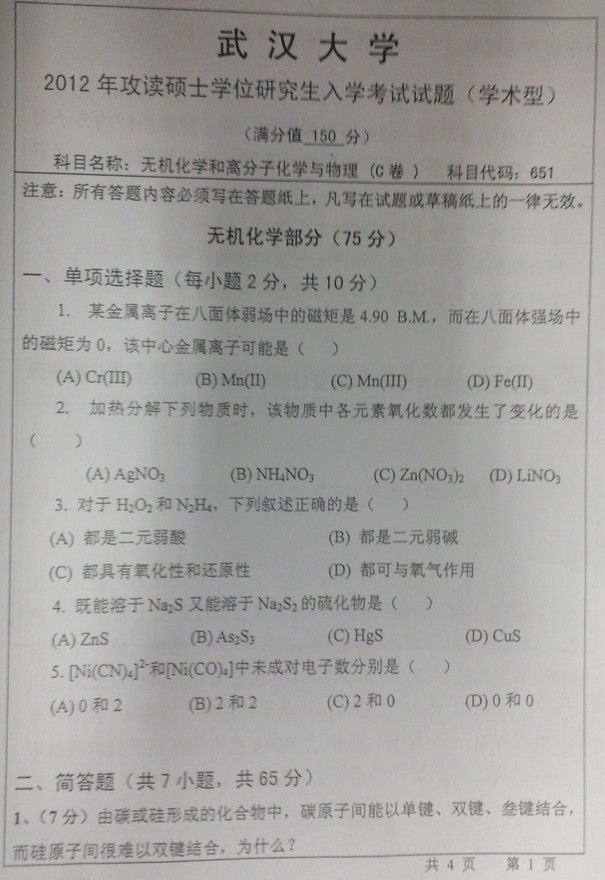 注:试卷解析所依据的参考书包括:《生物化学》(朱圣庚 第4版)、《生物化学简明教程》(张丽萍 第5版)(以下简称简明生化)、《生物化学原理》(杨荣武 第2版)、《生物化学习题解析》(陈均辉 杨荣武等 第4版 科学出版社)