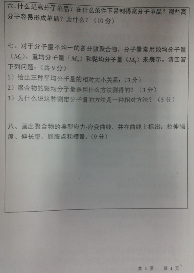武汉大学2012年无机化学和高分子化学与物理C卷651考研真题(4)