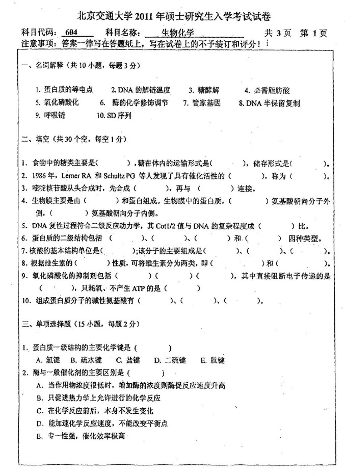 2008-2011北京交通大学617生物化学历年考研真题(10)